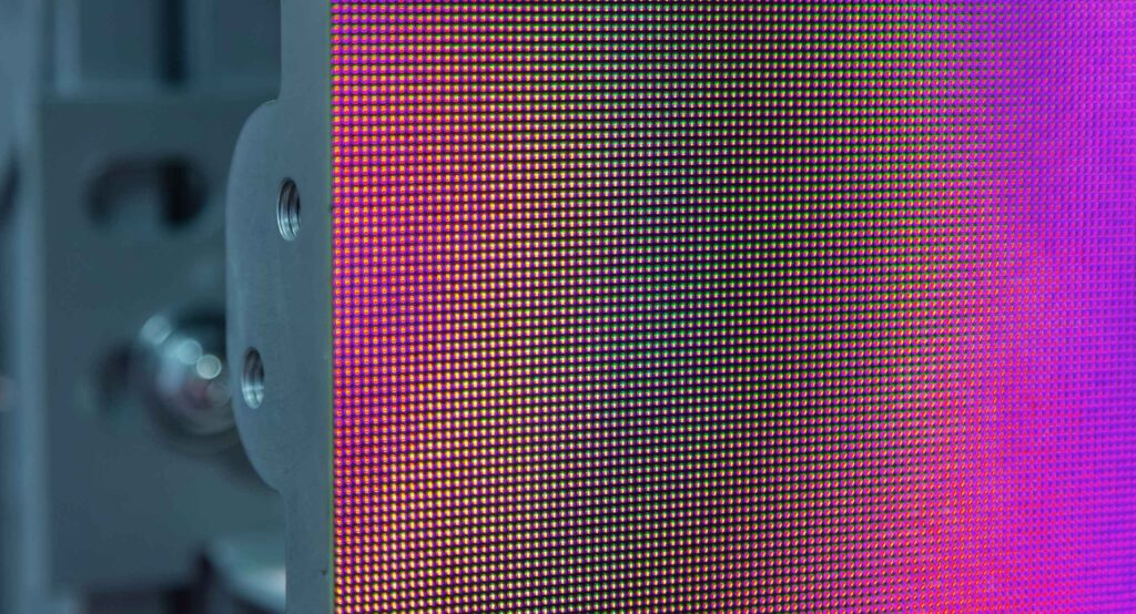 각 픽셀은 밝기를 조절하여 다양한 색상을 나타낼 수 있으며, 이 과정은 빨강, 녹색, 파랑 LED의 조합으로 이루어집니다. 예를 들어, 자홍색은 빨강과 파랑 LED를 활성화하고 녹색 LED는 비활성화하여 표현할 수 있습니다.