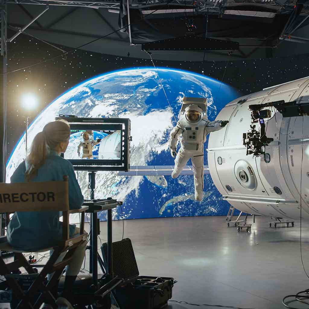 방송 스튜디오와 이벤트 현장에서는 몰입형 LED 배경을 통해 실시간으로 가상의 장면과 상호작용하는 환경을 조성합니다.