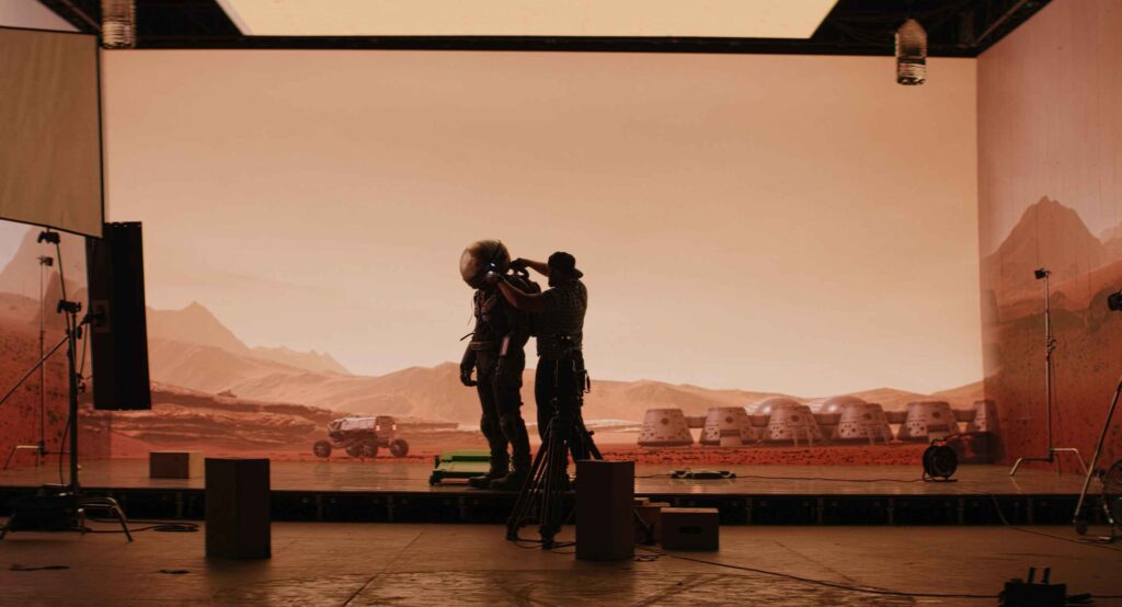 버추얼 프로덕션에서는 LED 디스플레이가 세트의 배경과 주변 환경을 형성해, 배우와 소품을 실시간으로 가상의 공간에 배치합니다. 이는 촬영 현장에서 이미 가상의 세계를 카메라에 담을 수 있어, 포스트 프로덕션에 소요되는 시간과 비용을 크게 절감합니다.