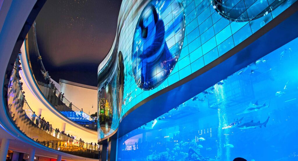 대형 LED 파사드를 활용해 브랜드 홍보를 진행합니다. (예: 뉴욕 타임스퀘어, 서울 코엑스 전광판)